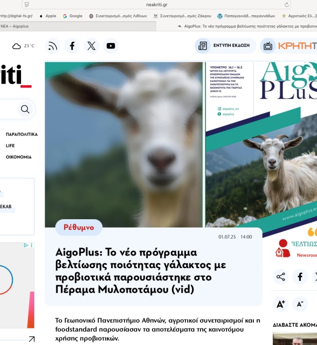 Οι ιστοσελίδες ¨neakriti.gr¨ και “naxostimes.gr” ανήρτησαν δύο πολύ ενδιαφέροντα δημοσιεύματα, αφιερωμένα στο έργο Aigoplus!